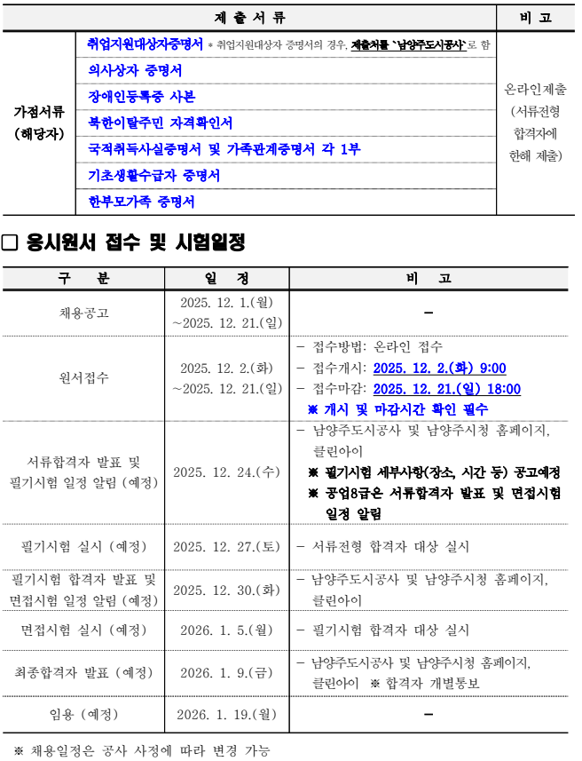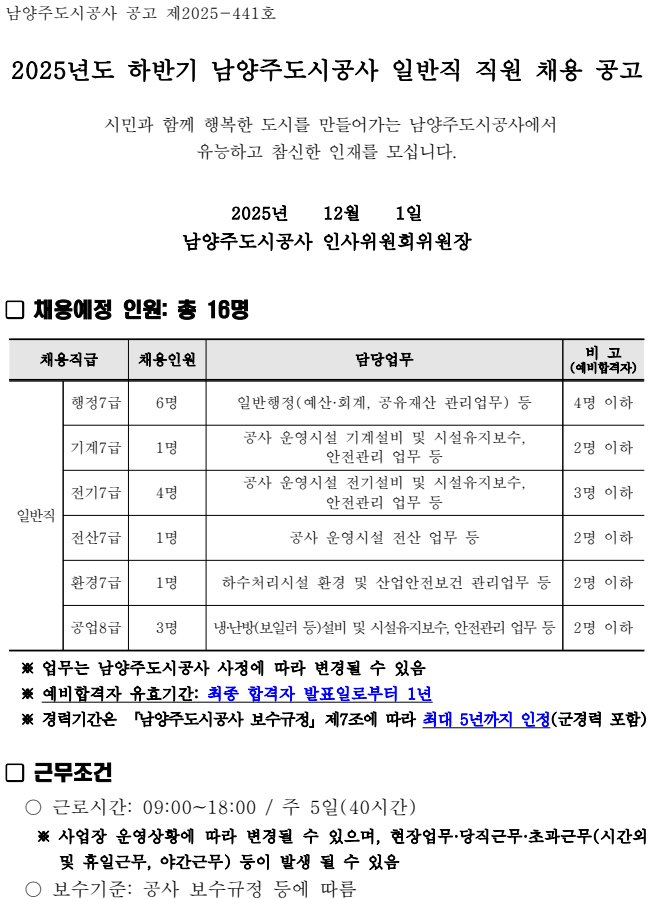 2025년도 하반기 남양주도시공사 일반직 직원 채용 공고